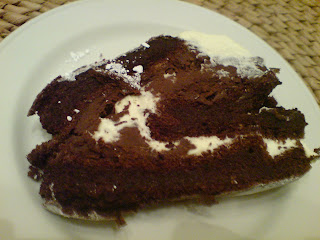 THE PUD: We drank a lot of red wine and sunk a few limoncellos, our energy regained from somewhere, then I rolled out the eveining's pudding - chocolate mousse and whipped cream roulade. These are so much fun to make - just layer them with a big slather of naughtiness and roll that sucker up, dust it with icing sugar and wait for the cries of delight.Susie was thrilled - she used to swim for Scotland and knew she's be able to shake off the excess in the pool the next day. I knew nothing of the sort but ploughed in regardless.